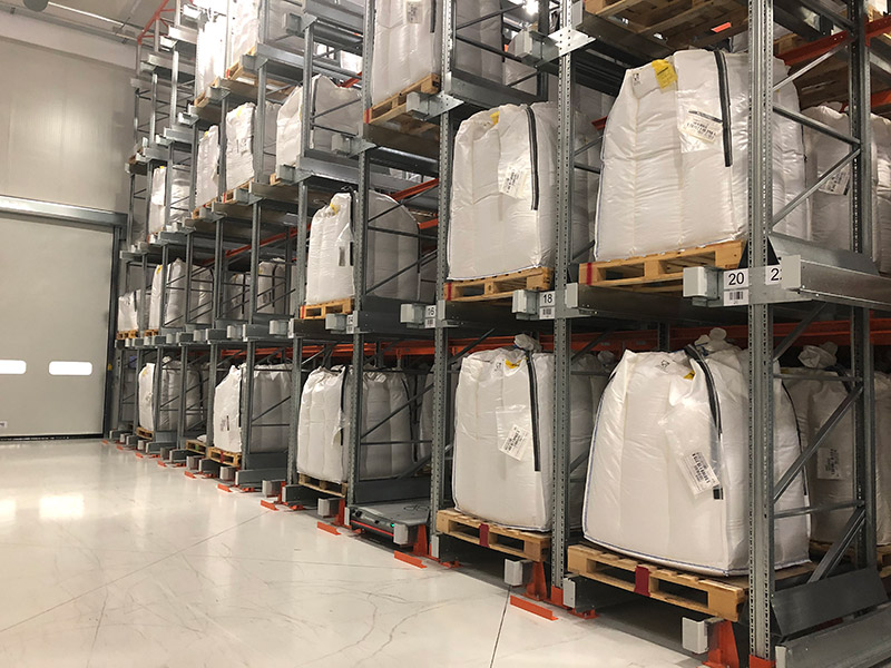Le système de stockage pour palettes multi-profondeur avec navette est une solution innovante pour automatiser les rayonnages drive-in et maximiser la densité de stockage grâce à une plus grande flexibilité, en facilitant le chargement et le déchargement des unités de charge. Grâce à la navette, les opérateurs n’interviennent qu’aux extrémités des rayonnages avec des chariots élévateurs standard, évitant ainsi l’accès direct aux allées. En effet, la navette permet de positionner les palettes sur les différents couloirs en fonction des logiques LIFO et FIFO (en cas de double accès). Les rayonnages drive-in traditionnels deviennent ainsi plus flexibles en n’exigeant pas de charges homogènes pour l’ensemble de la travée, mais seulement par niveau.